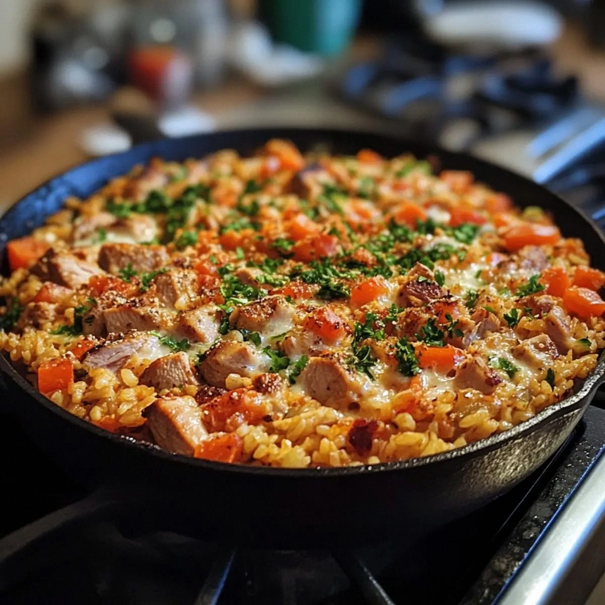 Many cooks keep the heat too high, causing the turkey to brown too quickly and the rice to burn. I keep the heat at medium‑low after adding the rice, allowing the liquid to gently simmer. This slow, steady cook ensures the rice cooks evenly without scorching the bottom of the skillet.